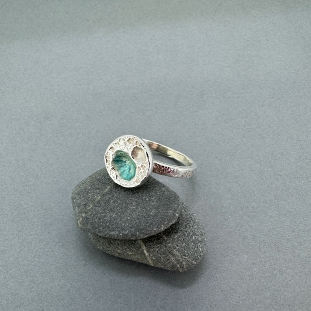 Blue enamelled rockpool silver ring in size R one of a kind.