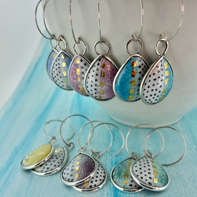 The dotty enamel earrings you will receive will be as close a match to the one shown as I can manage and part of the beauty of these enamels is that no two will ever be exactly the same. If you are uncertain, please send me a message and I will send you an image of the actual one that you will receive. contact@caroleallenjewellery.co.uk